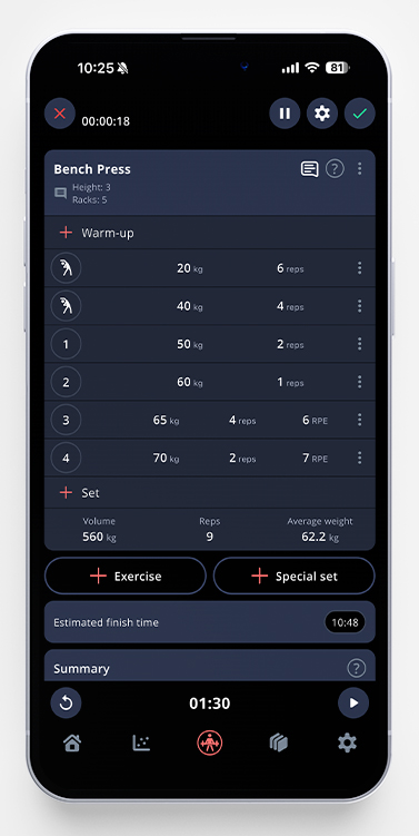 The first one is quick stats. You’ll see several stats about that specific set, like your estimated 1RM, how many % of your 1RM, how many times your bodyweight it is etc. Please note that this is a premium feature. Just tap anywhere outside the box to close it once you’re done, and you’ll go back to the workout.