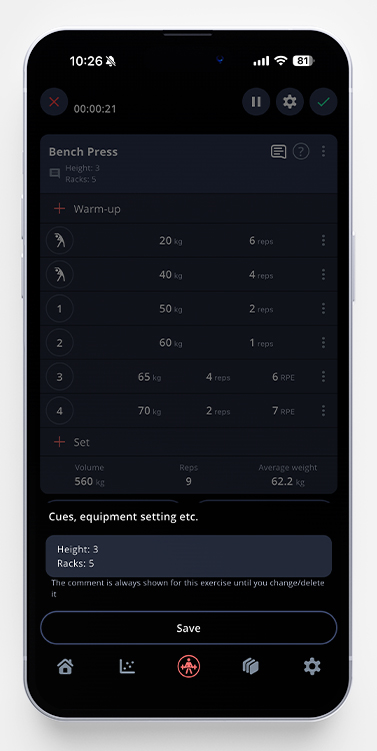 By long pressing on the comment icon in your active workout, you’re able to edit the pinned comment, without going through the handle exercise menu.